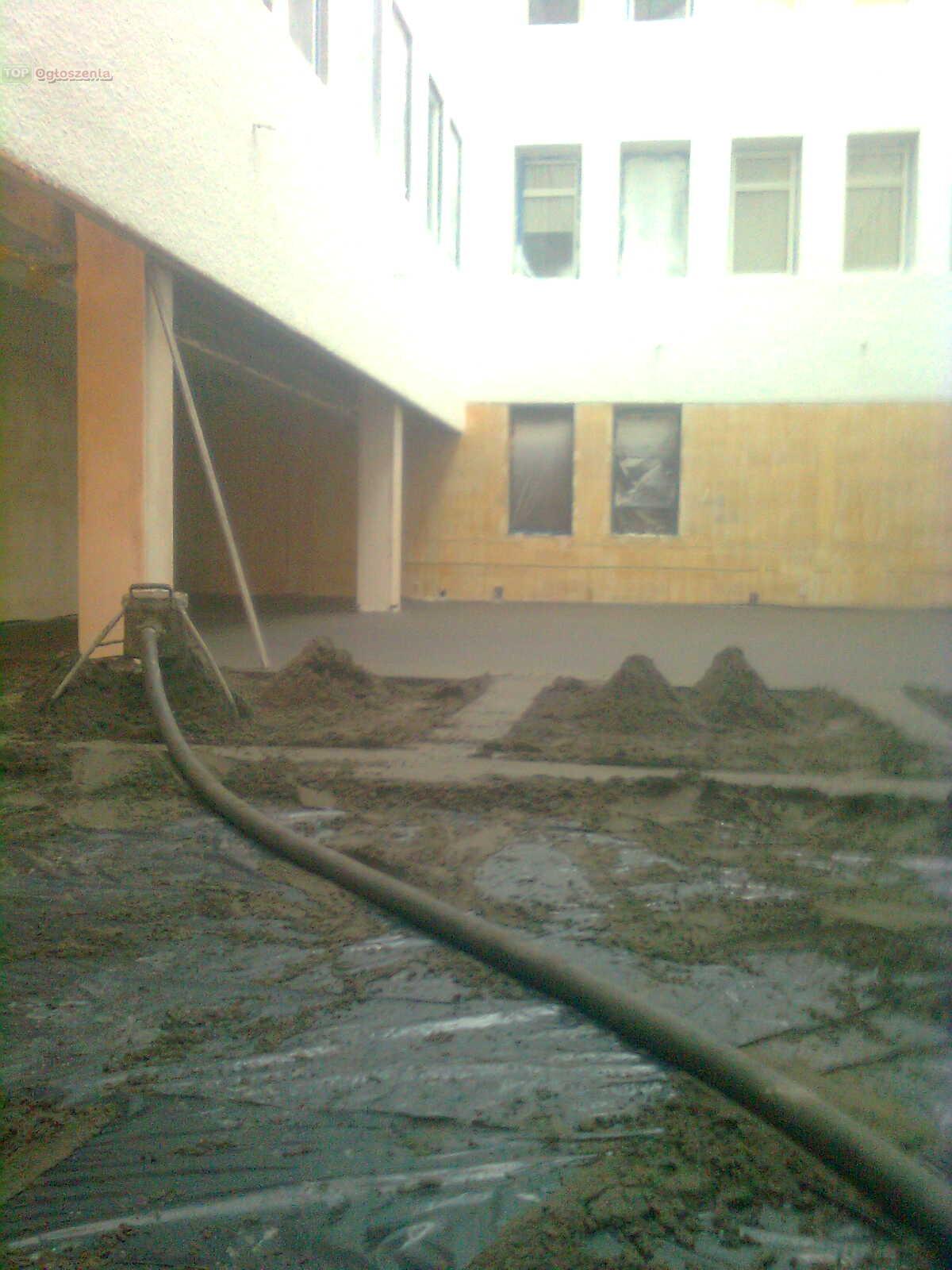 posadzkę wykonujemy przy pomocy łat kturymi ściągamy materiał po uprzednio wypoziomowanych pasach [metoda półsucha] zacieramy mechanicznie zacieraczką elektryczną ,tak wykonana posadzka jest odporna na ścieranie równa gładka i wytrzymała